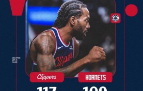 1月13日讯 NBA常规赛,快船主场117-109击退黄蜂。赛后球队官推发布赢球海报,伦纳德成为封面...